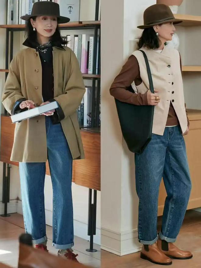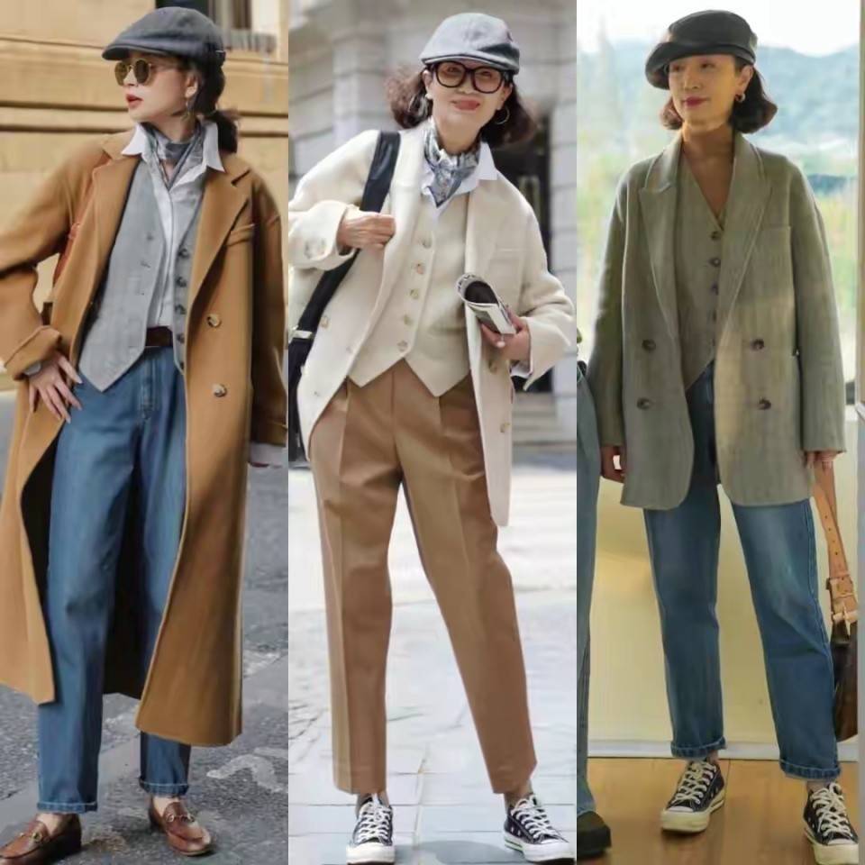 中年女性也可以采用叠加的穿搭方法,比如直接用一件白色的西服马甲,内搭军绿色的半高领针织衫,加上一条蓝色的牛仔裤,白天出太阳的时候可以直接单穿出来,天气凉,披上大衣外套,能让你瞬间感受到温暖。