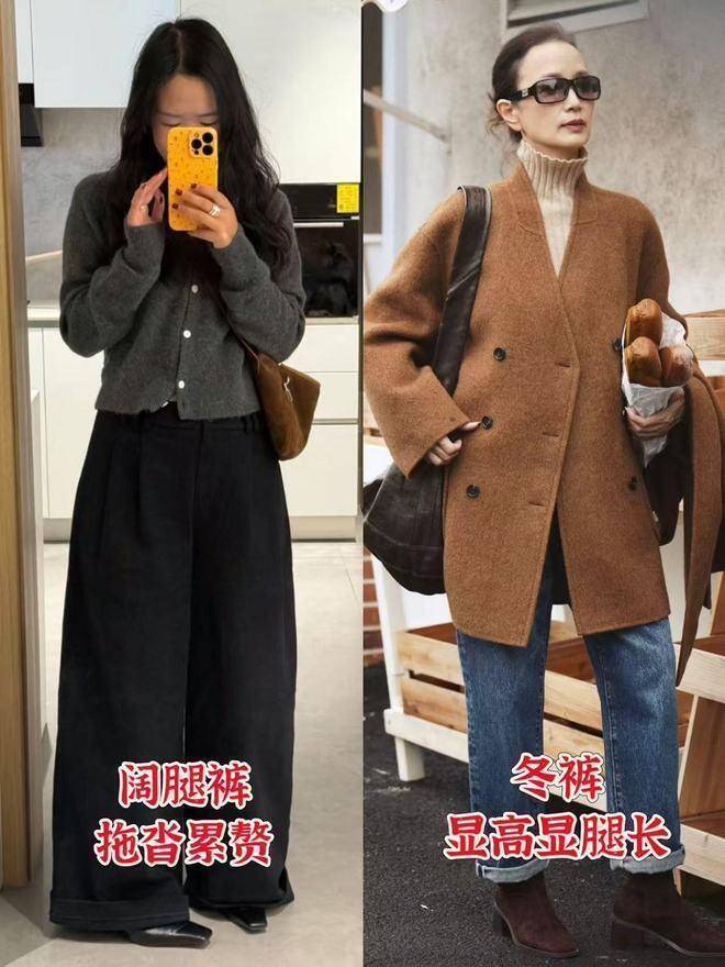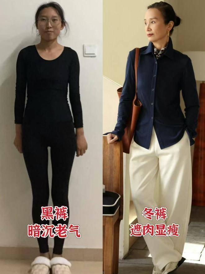 (一)穿衣打扮尽量不花哨,不紧身①:黑色紧身裤VS白色阔腿裤